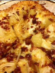 This is another great homemade pizza but a failed attempt at recreating the Maui Zaui sauce recipe. We love Round Table Pizza’s Maui Zaui pizza with Polynesian Sauce. It’s a little sweet, a little spicy. Maybe citrusy? Never has recreating a recipe been quite so difficult for me!