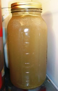– After refridgerating your stock, you can open the jar and easily remove any fat that has floated to top. If you want to use the stock right away, you don’t have to remove the fat.