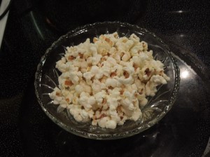 If you like flavored popcorns, you can also trick this out however you like. Maybe grated parmesean cheese and garlic salt instead of the traditional butter and salt. Or, maybe melt some caramels in the microwave and drizzle it over the popcorn.