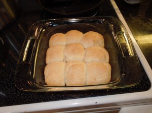 Preaheat oven to 375 degrees. In a large bowl, mix together all dry ingredients. Cut in butter until mixture looks like coarse bread crumbs with some small, pea-sized pieces. Incorporate buttermilk until smooth. Kneed on a lightly floured surface or with dough hook attachment on your stand mixer about 3-4 minutes. Coat bottom of a 9×9 glass pan with the vegetable oil. Roll dough into 1 1/2″ balls, flatten slightly, roll in oil once. Bake approximately 30 minutes or until the tops are golden in color. Serve with butter, jam, honey or even gravy.