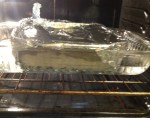 To make the water bath, place a 13×9 glass pan into the oven. Pour boiling water into the pan. Place smaller pan into the larger pan. Don’t fill the pan more than halfway with water! The water will continue to bubble and boil – overfilling could cause splashes and burns.
