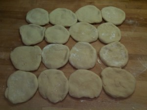 Combine all dry ingredients. Mix in water and kneed for 6 about minutes. On a floured board, cut dough into 16 equal parts, roll dough into balls and flatten. Roll each disk out on a floured board to desired thickness.