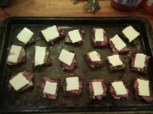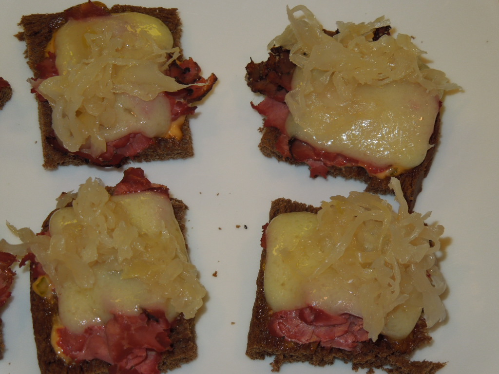 This week we had some delicious pastrami ruben sandwiches. As I rummaged through my fridge for dinner a couple of days later, there wasn’t really enough fixin’s left for more than one sandwich, and generally speaking, a whole ruben is a little more than I can handle anyway, so I got creative. This would make a great make appetizer or even a little side bite with some soup.