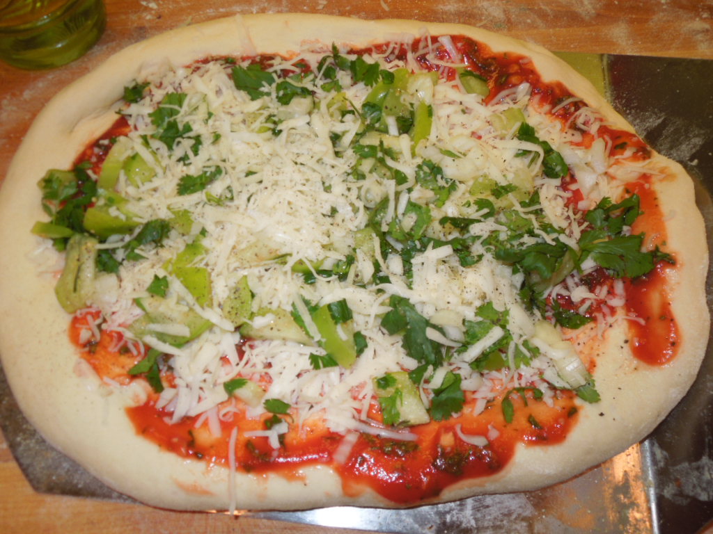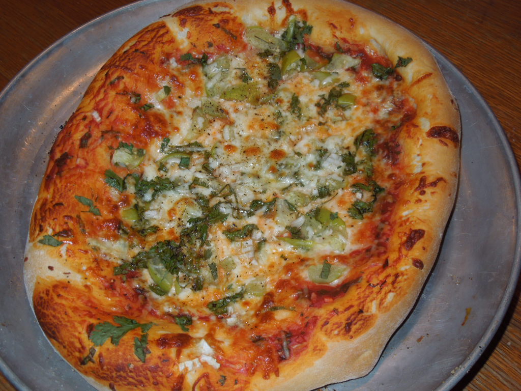 Often times, my leftovers meet a new existence in the form of pizza. As I was playing “clean out the fridge” this week, I had a few stray tomatillos and a little bit of cilantro left over so I decided to go for a Mexican veggie pizza. What a bright and amazing flavor! If you want to add a little heat, maybe dice up a little fresh jalapeno as well.
