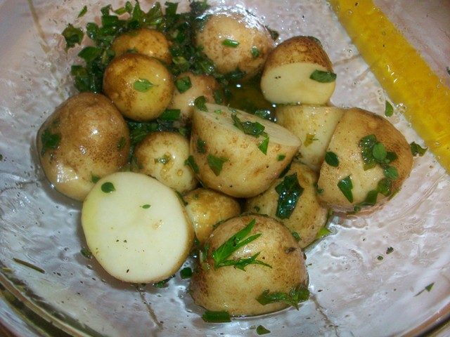 Mix together in a bowl. Allow veggies to marinade in oil and herb mixture for about 10 minutes. Save remainder of oil mixture for basting.