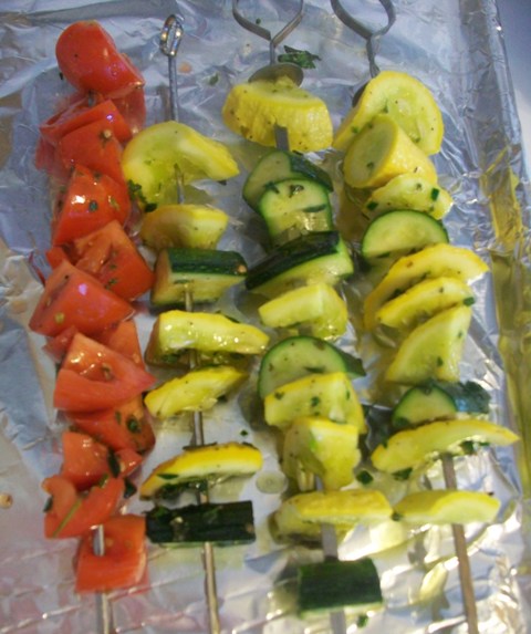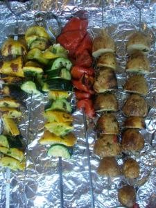 This year I’ve spent a lot of time in my garden. I’m currently beginning to enjoy the fruits of my labor, and last night we enjoyed a great meal that went from the garden to the grill. It did make a couple stops, for washing, chopping, seasoning and skewering before it hit the grill.