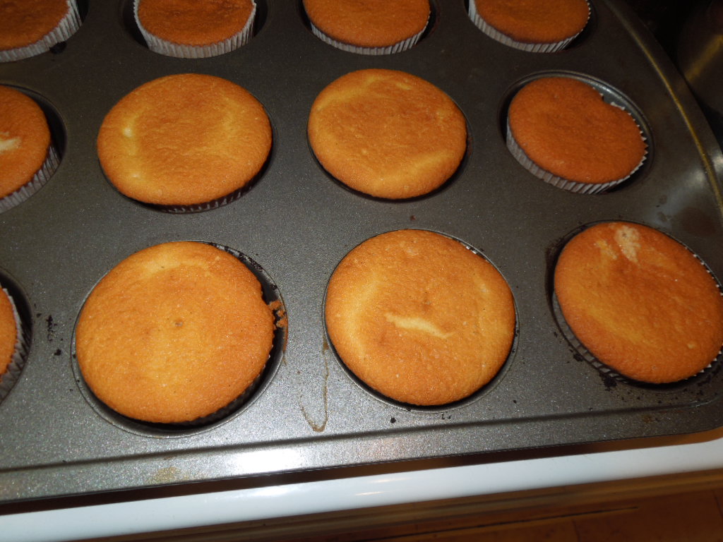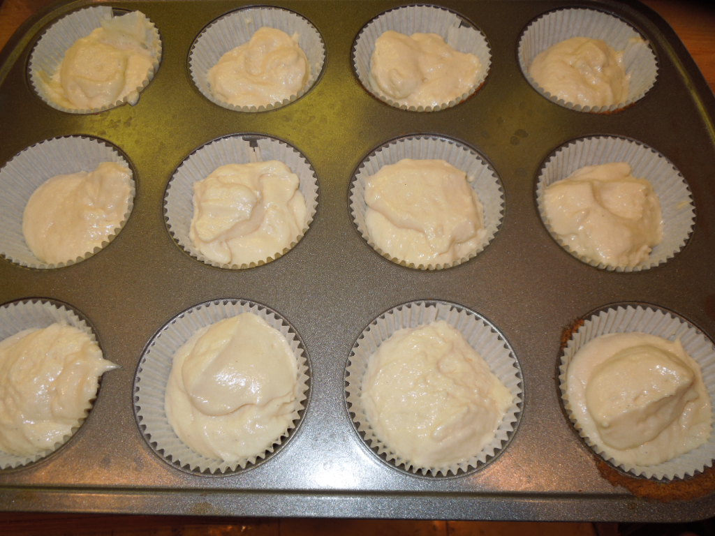 Carefully spoon batter into muffin tins lined with cupcake papers until the cups are ¾ full. Bake for 18-20 minutes or until tops are golden and a toothpick inserted into the middle comes out clean.