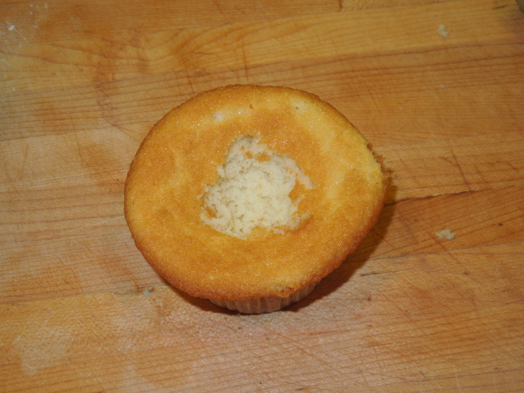 Let rest 5 minutes then transfer the cupcakes onto a cooling rack. Once completely cool, scoop out a hole from the center of the cupcakes. I like to use the small end of my melon baller for this. What you do with all of the leftover “cupcake holes” is entirely up to you.