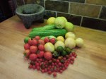 I have to give a BIG thanks to our long time family friend, Jim, for sharing the abundance of his garden. Just look at all of this gorgeous produce – lemons, cucumbers, lemon cucumbers and a huge assortment of varying sizes and colors of tomatoes (check out the super cool green ones!). He really is an expert gardener! (Stay tuned later in the year when his guava trees come into season). Awesome!