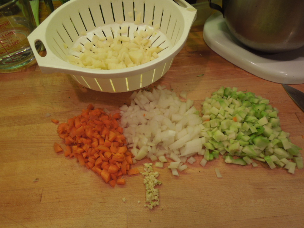 2 crowns broccoli, stalks cut off peeled and diced, crowns cut into smaller pieces and set aside