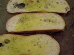 Preheat oven to 425 degrees. Place sliced bagel on a baking sheet, brush with olive oil, sprinkle with Johnny’s Garlic Spread, then top with a little parmesan cheese. Place in oven and cook for around 5 minutes or until the cheese is melted and the edges begin to brown.