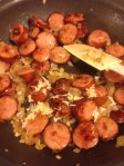 Lower heat to medium. If adding vegetables, add after the sausage is browned and cook until they begin to soften.