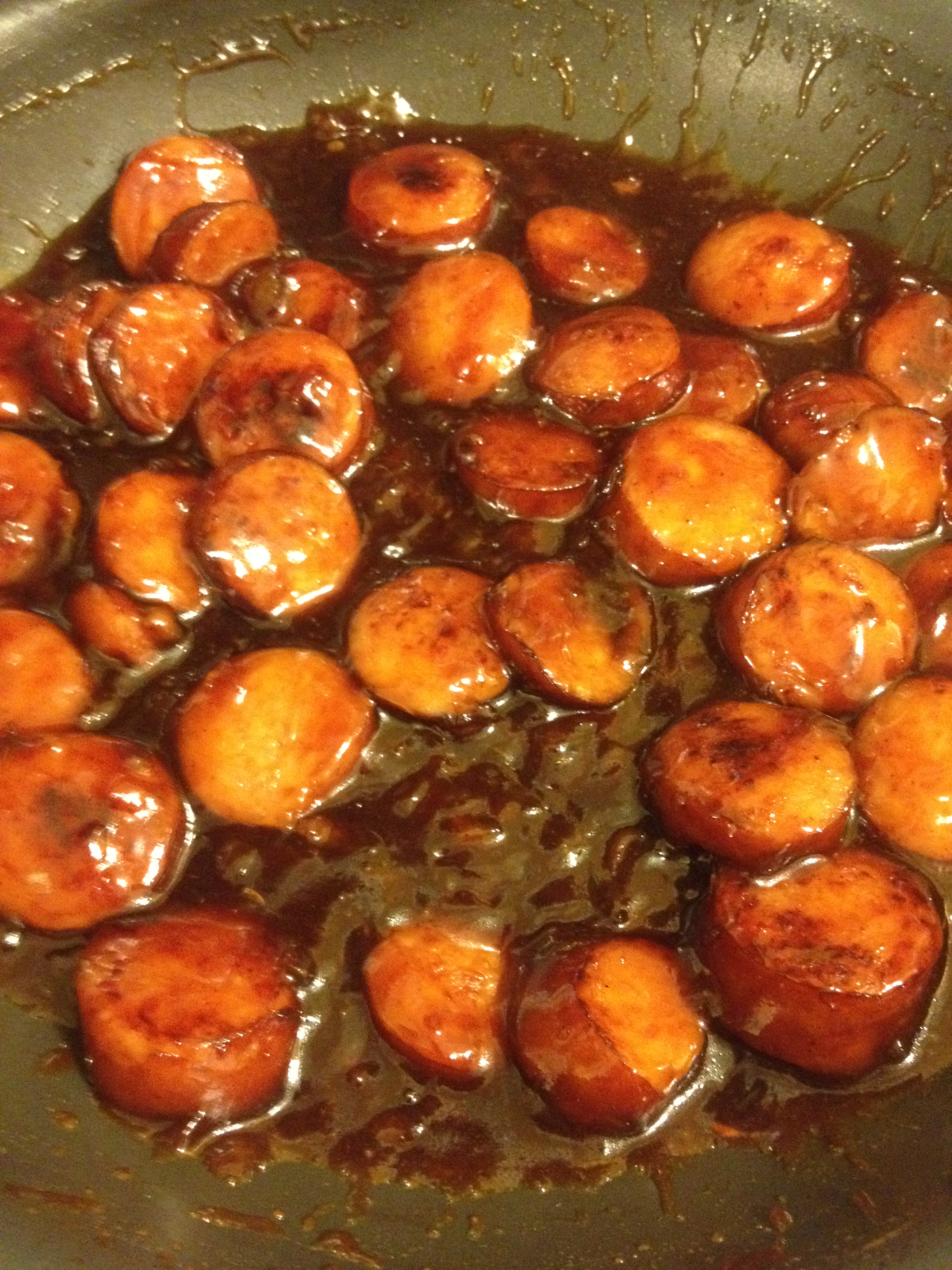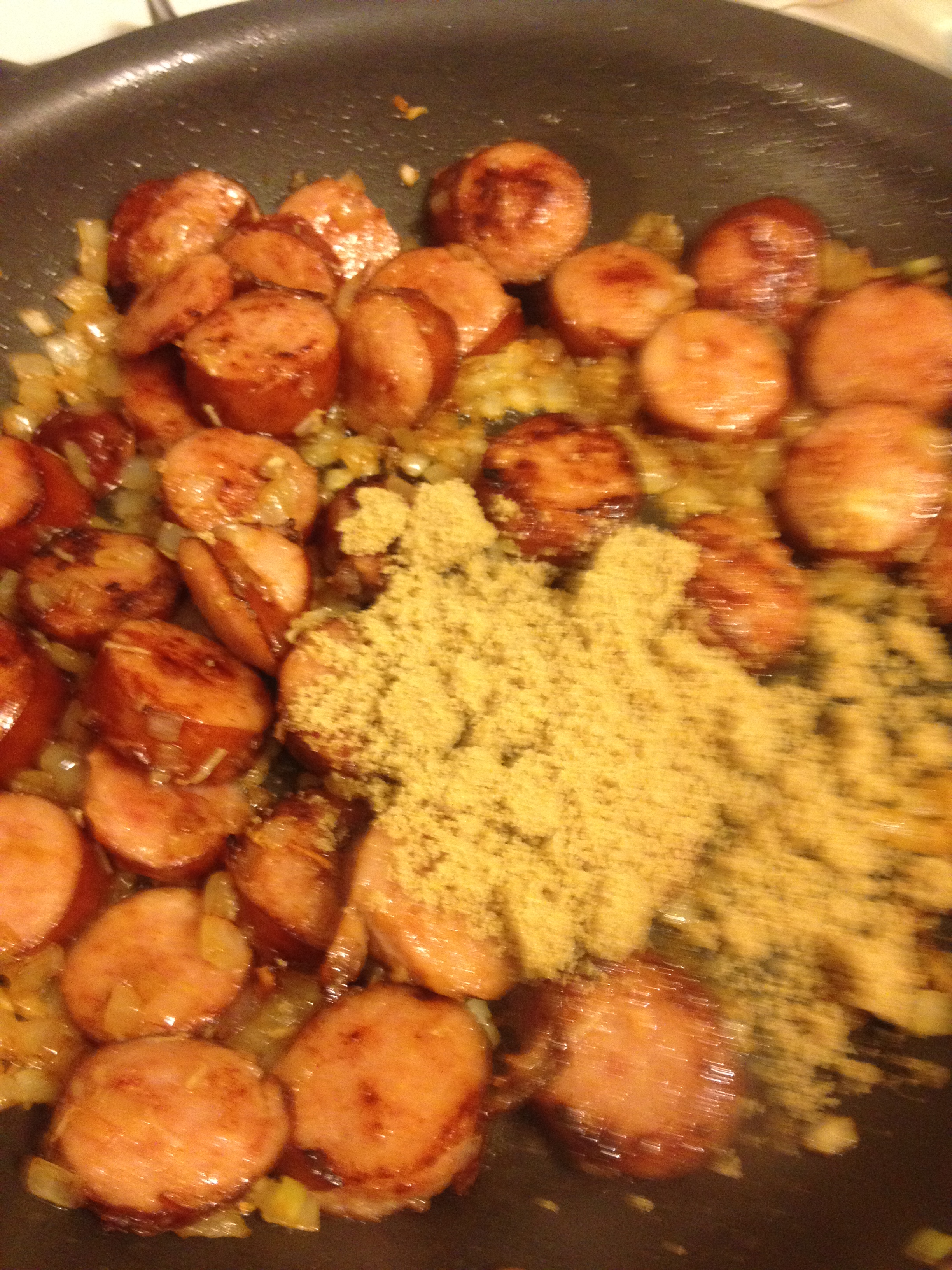This is one of my favorite “30 minutes or less” meals. Use kielbasa, smoked sausage or even some Lil’ Smokies. My family loves this dish, and I make it year round.