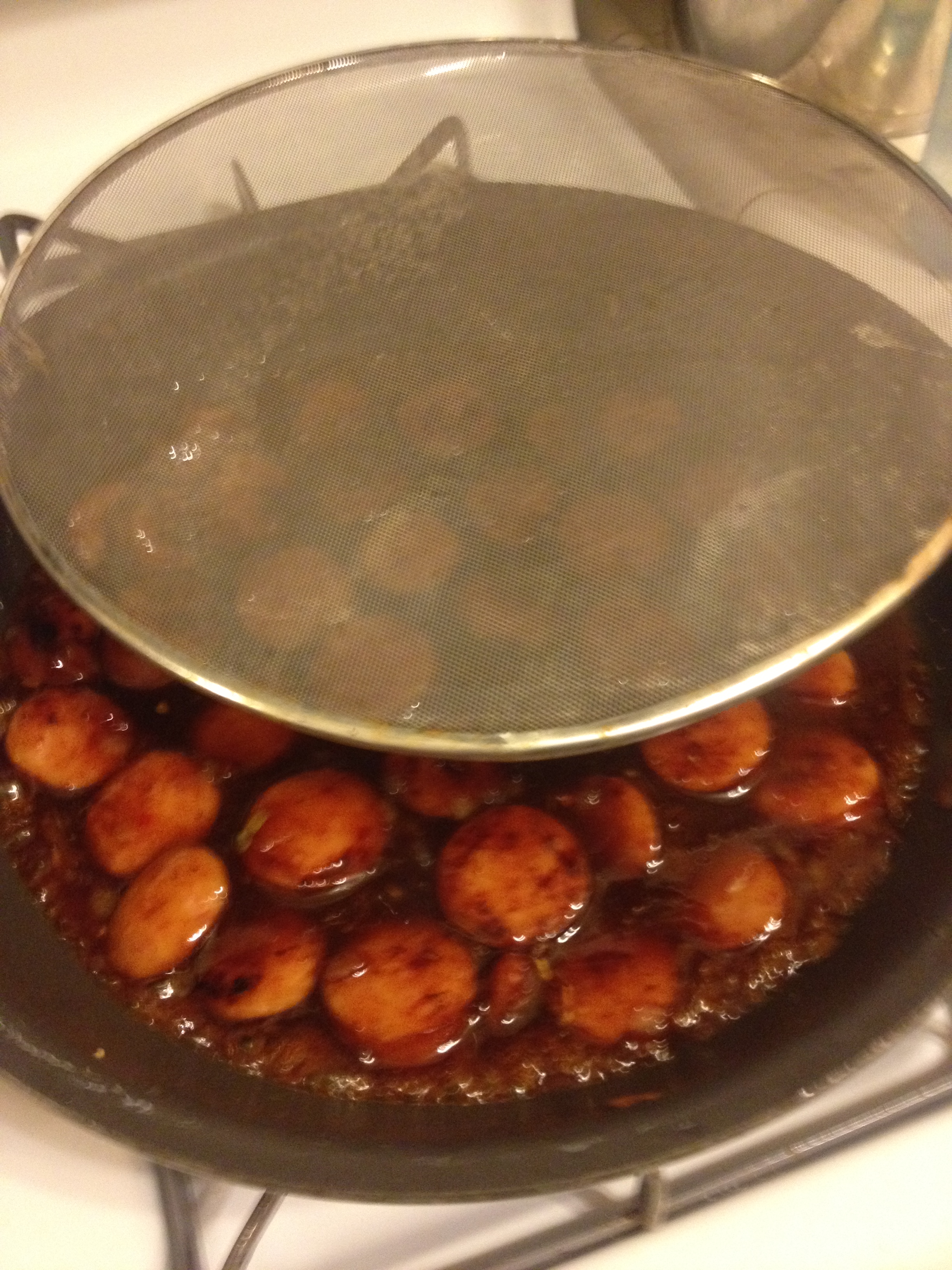 Pour brown sugar over meat and vegetables, stirring until completely dissolved. Add remaining BBQ sauce ingredients, stir well and bring to a low boil. Lower heat to medium-low and cover with a screen to prevent splatters. Cook for 10 minutes, or until sauce has thickened. Serve over rice.