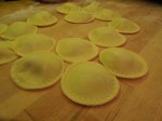 Combine flour, salt and egg yolks, then add in just enough water, one tablespoon at a time to form a stiff dough. On a lightly floured board, roll dough out as thinly as possible. Spoon ravioli filling by teaspoon on to dough, leaving enough room around the edge to make the ravioli. Beat one egg, then brush on to dough around the filling. Place another layer of dough on top and pressing dough around the sides of the ravioli. Cut ravioli to desired size and shape and crimp edges with a ravioli crimper or a fork.