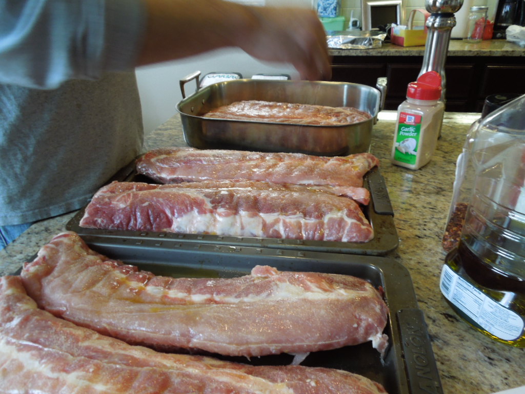 Preheat barbeque or grill. The ribs will cook for 3 hours total at around 200 degrees so make sure you have enough fuel.