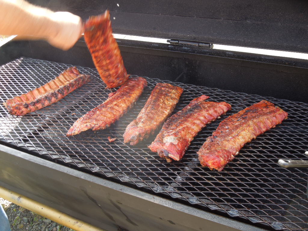 How do you light a barbeque this size? With a flame thrower, of course! Just kidding – it’s not really a flame thrower. It’s a weed burner used for clearing brush but it’s still really cool and the easiest way to light the hardwood lump mesquite charcoal Robert was using to cook the ribs. Oh yeah, the ribs! Sorry, I was distracted by the barbeque.