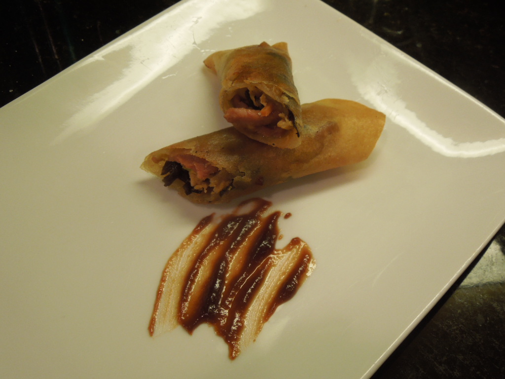 When I very first had Mu Shu, years ago, I noted how similar in size and texture the Mu Shu pancakes are to lumpia wrappers. I thought maybe. Basically this recipe utilizes the Mu Shu pancake as the “wrapper”, the Mu Shu as the filling and the hoisin sauce as a dip for the lumpia. Of course, you can always just buy extra lumpia wrappers from your local market and use those if you like. A single container of Mu Shu would make dozens of lumpia.