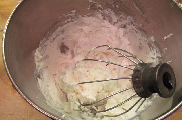 Whip together whipping cream and sugar on medium speed until whipped cream reaches desired consistency. You can also add a splash of vanilla if you like.