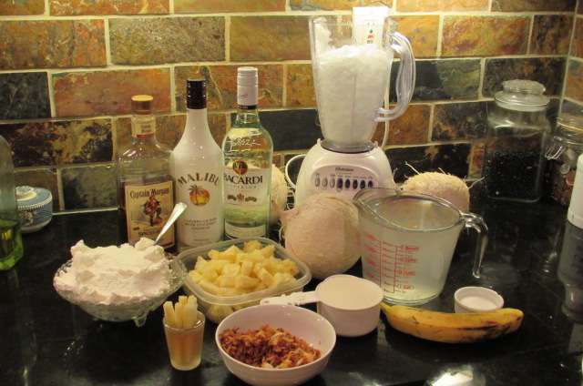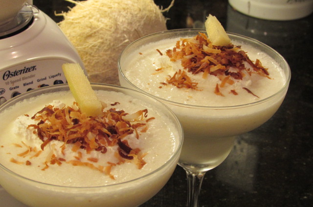 It just finally started raining here in the Bay Area, so it must be time to plan my pina colada escape. I’ve long loved the Highway 29 flea market in American Canyon, but when they have fresh young coconuts three for five dollars, good pineapple and fresh sugar cane, I especially love it! That means fresh, from scratch pina coladas to me. I hope you enjoy this pina colada escape as much as I did! And don’t forget the garnishes!