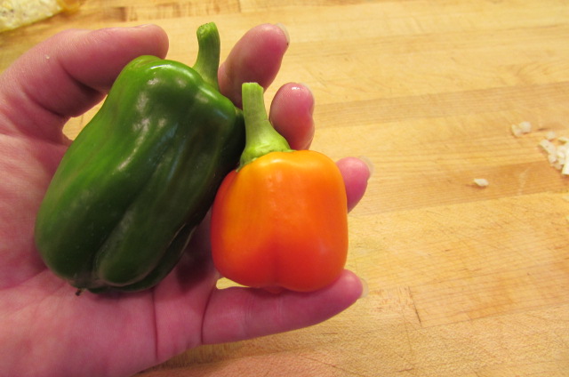 This dish uses these fabulous but tiny bell peppers from my garden.
