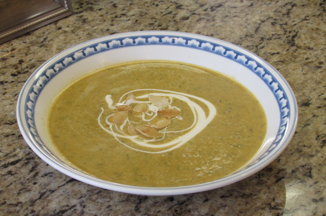 This past weekend, my friend Reggie invited me over to share her Smoky Pumpkin Soup recipe. This delicious recipe comes courtesy of the care2.com website and, judging by the date on the web print out, she’s been using this recipe the better part of 10 years! What an awesome, flavorful, satisfying soup. I couldn’t get enough of it!