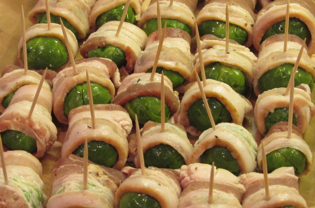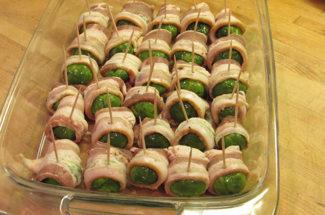 For those of you who liked my post “So You Say You Don’t Like Brussels Sprouts“, you are going to love this. I personally love Brussels sprouts but I’ve found that if I add bacon, I can get pretty much anyone to eat them. These are good as an appetizer or a side dish, and the most awesome thing is that they can be prepared ahead of time and stored in the fridge so all you have to do is pop them in the oven.