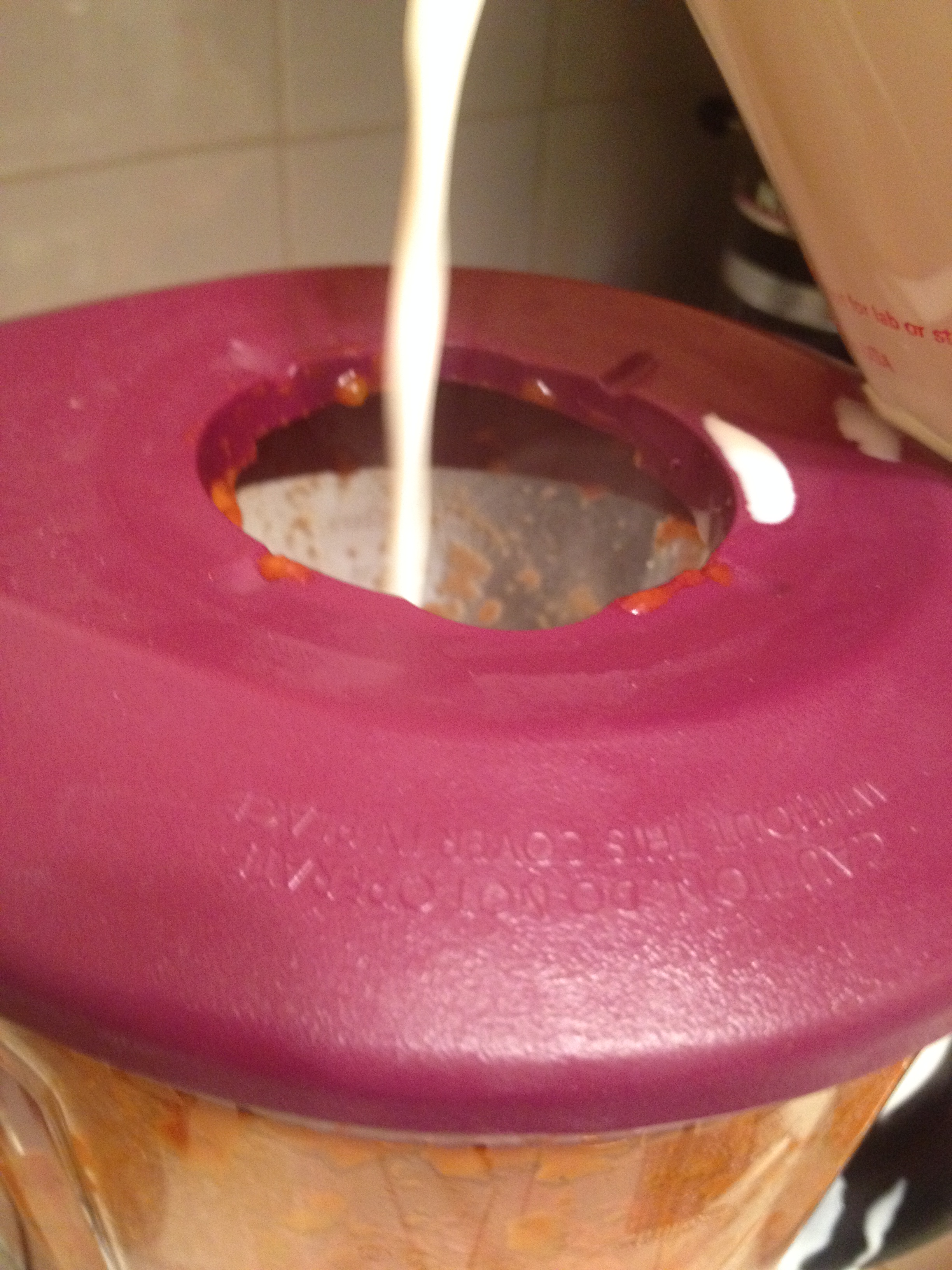 1/2 to 1 cup heavy cream, heated (you could probably use milk, but likely get a looser soup)