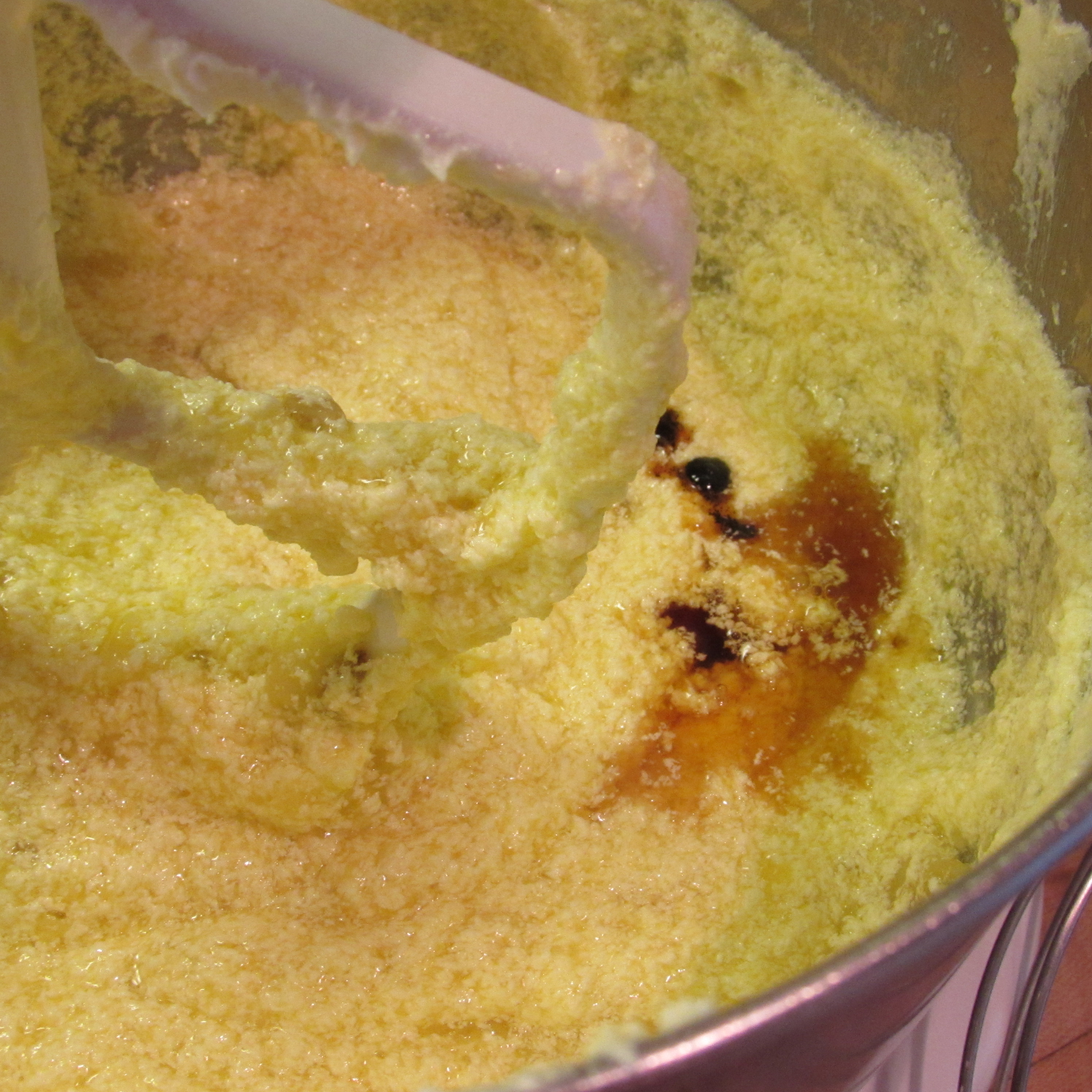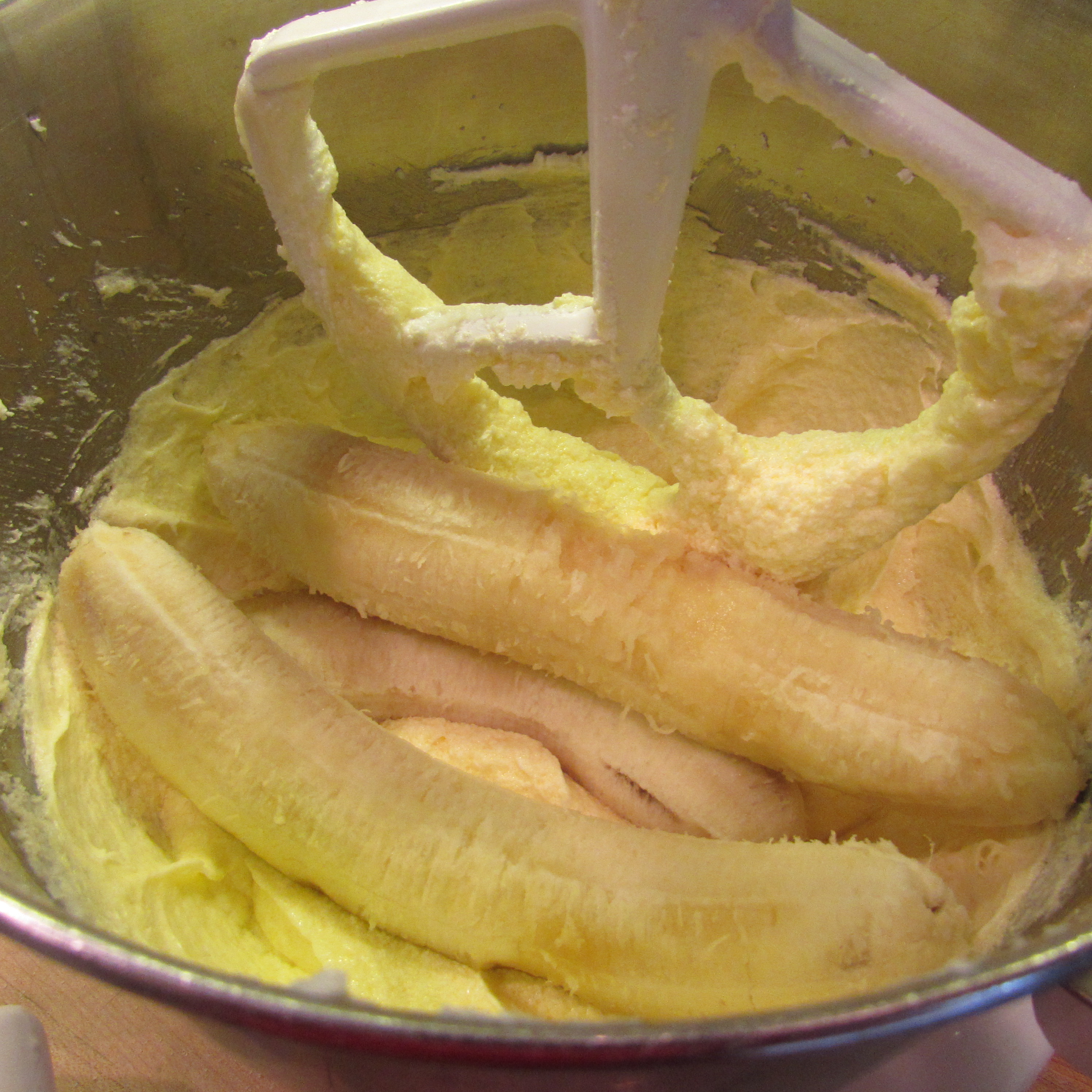 Preheat oven to 350 degrees. In a large bowl, mix together sugar, butter and salt until light and fluffy. Incorporate eggs, one at a time, scraping down bowl after each addition. Mix in banana, zest and vanilla until mixture is smooth.