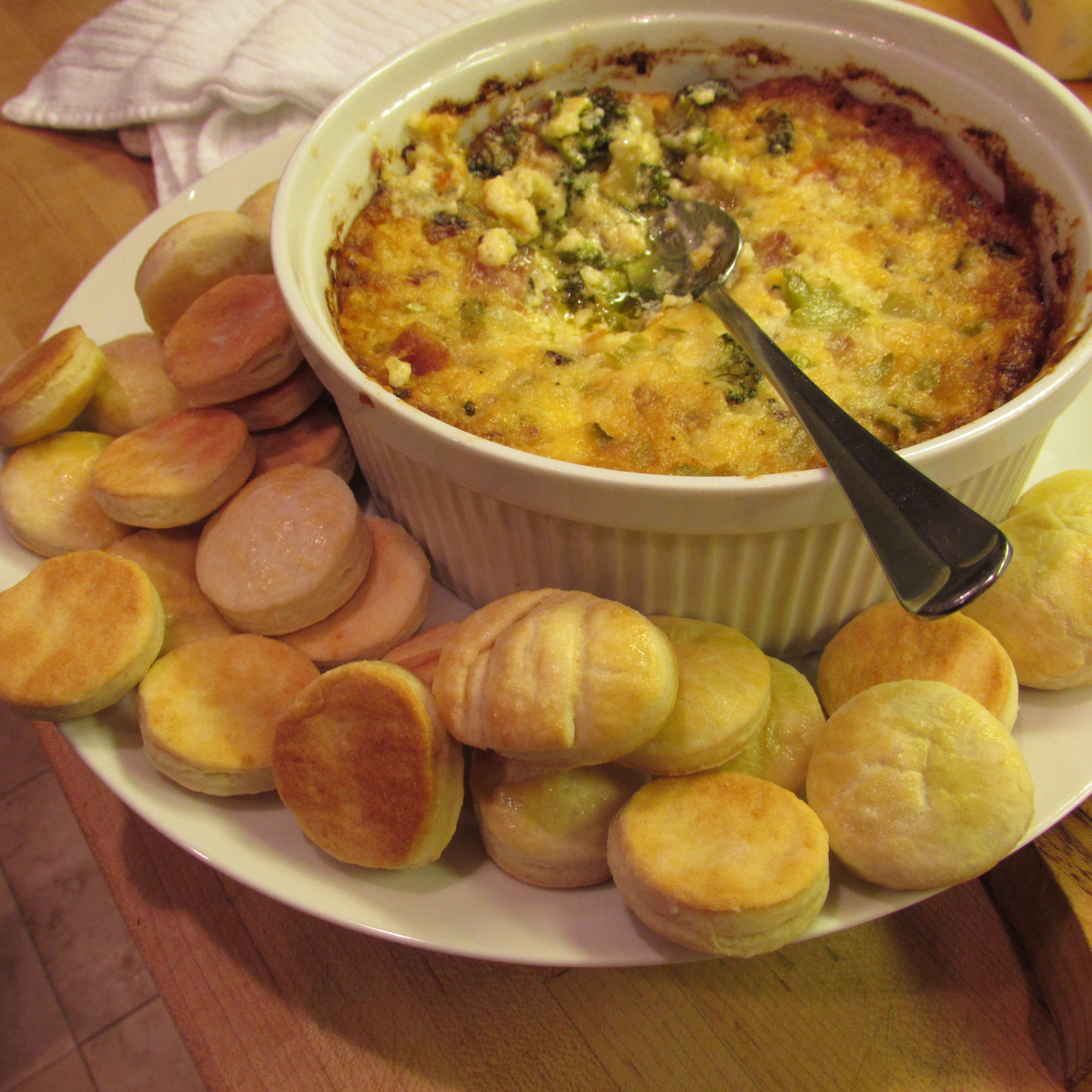 Did I mention how much we love our hot dips here at CPM? It’s true. And this one promises to be just as ooey and gooey as all the others. I got the idea from the iconic broccoli bacon cheddar soup. Can we make it into a hot dip? Oh yes we can!!! Pair it with some of Trish’s Mini Biscuits and it’s an instant party hit.