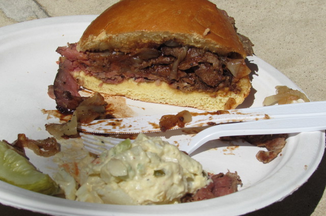 There’s never a shortage of food at Beerfest. At the festival we’ve found great Korean BBQ burgers, hot wings and hot dogs. If you love BBQ, head on over to Gregg’s BBQ Pit hosted by the Eldorado. Get a one, two or three meat plate complete with coleslaw, beans and cornbread. The meats are tender and well seasoned. We didn’t care for the baked beans, which were not completely baked, but the meats are outstanding. We hope to find our friend and celebrity chef, Robert Hesse, serving up tasty eats once again! (Read our 2014 and 2015 interviews with Chef Hesse!)