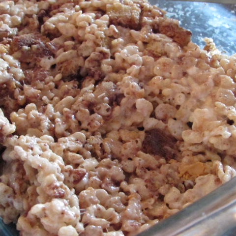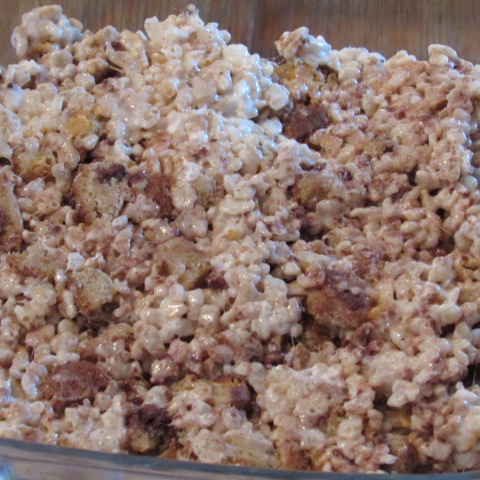 Last night I was baking cookies with my friend and neighbor, Mary. We made some traditional chocolate chip cookies, but also some butterscotch chip cookies. Both were grubbin’! We split the batch. Tonight, only about two +/- of each were left. I couldn’t let them go to waste but knew the quality would degrade over time. So I did what any other rational person would have done- I made Krispie Treats out of them!