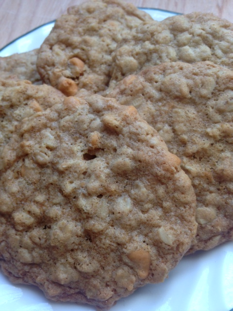 Preheat oven to 350 degrees. Cream together butter and sugars. Add eggs and vanilla; beat well. In a separate bowl, mix together flour, baking soda, cinnamon and salt. Add dry mixture to the butter/sugar mixture and mix until well combined. Stir in oats; mix well. Mix in butterscotch chips. Drop by rounded tablespoons onto ungreased cookie sheet (I like to use parchment paper but it’s not necessary). Bake 10-12 minutes or until golden brown. Cool one minute on cookie sheet then transfer to wire cooling rack.