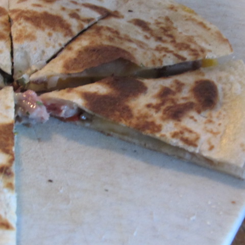 Sometimes dinner at our house just means repurposing leftovers into something new and delicious. Tonight’s dinner was just that. This quesadilla, cooked on the grill, made from pizza topping and steak leftovers and a few slices of cheese, made an incredible new family favorite dish.