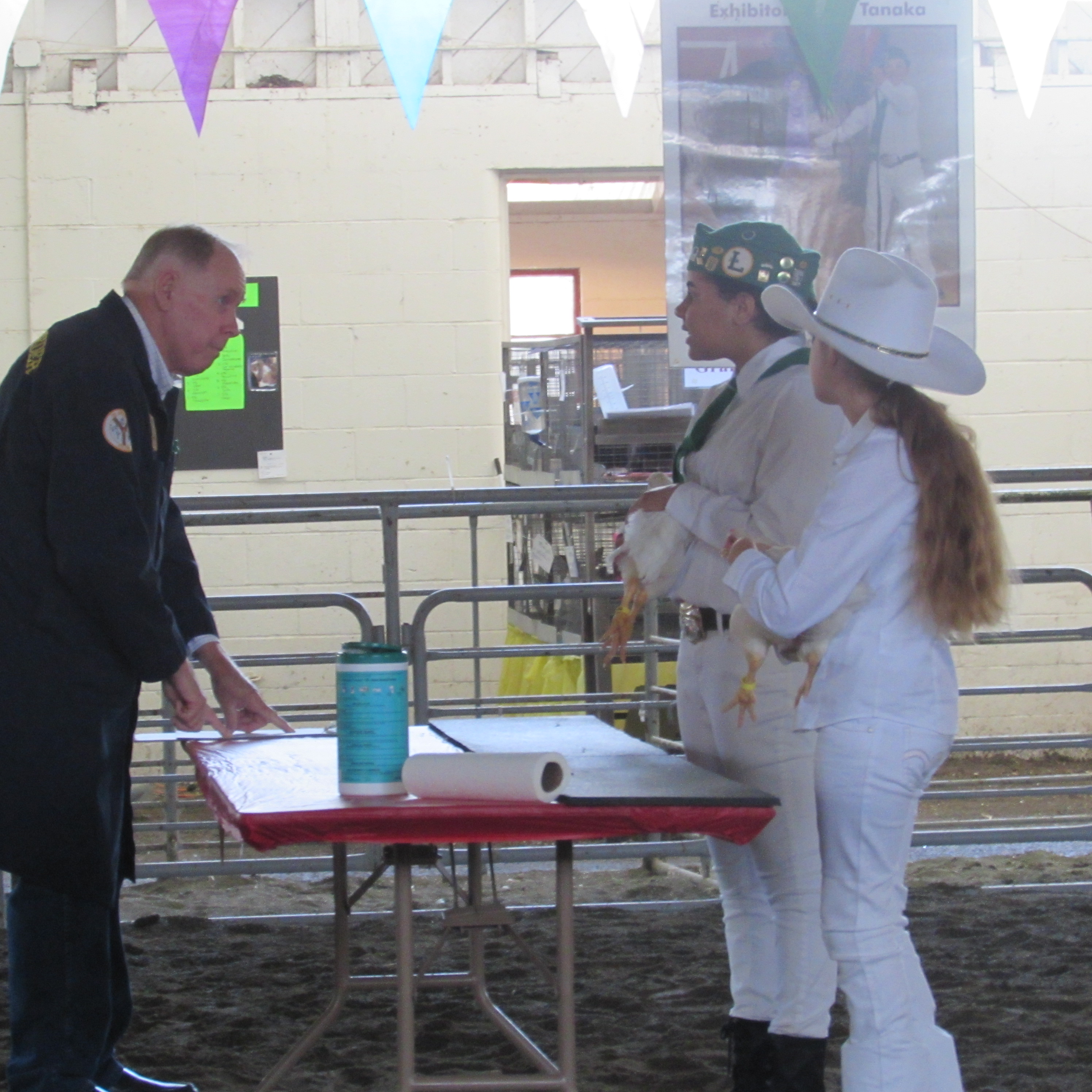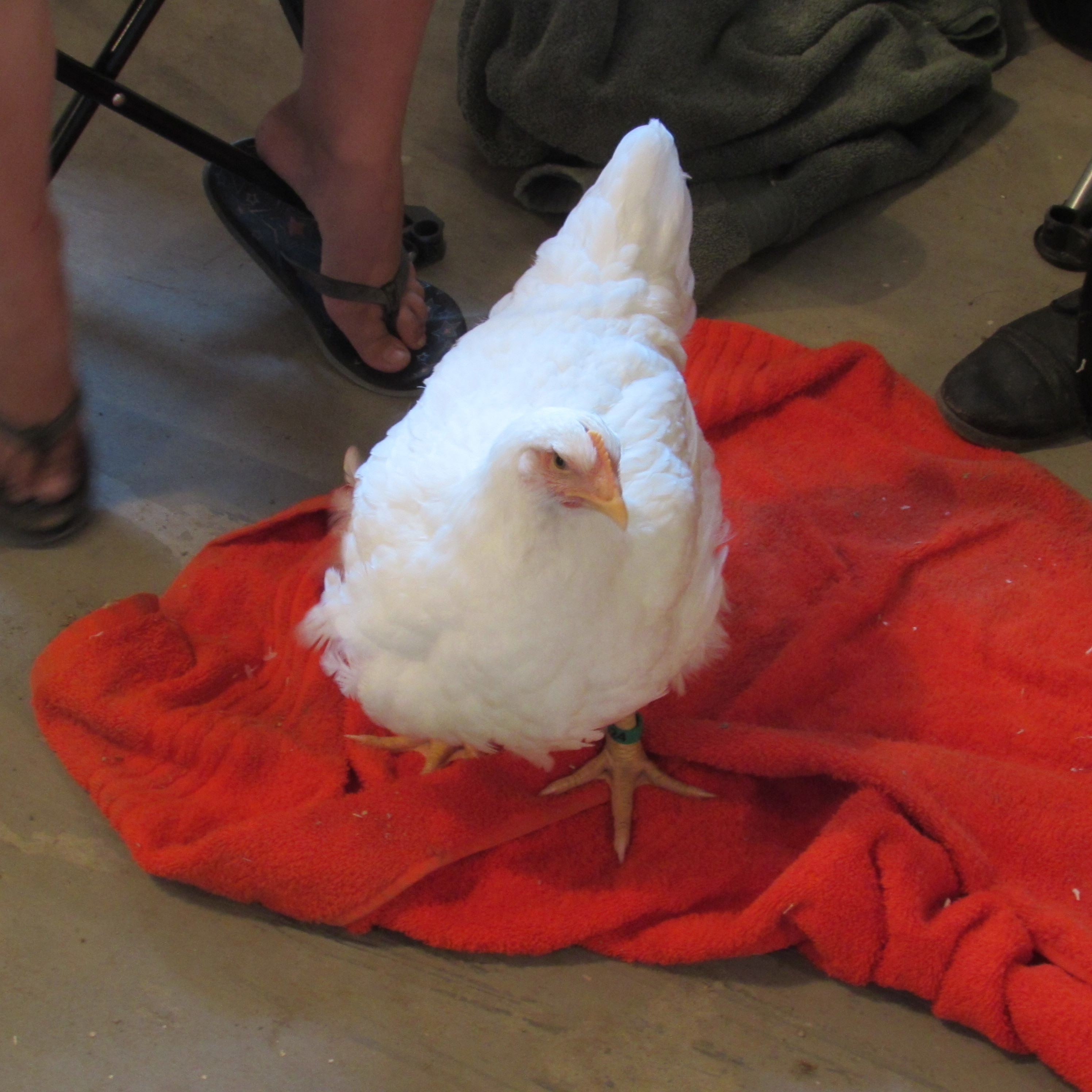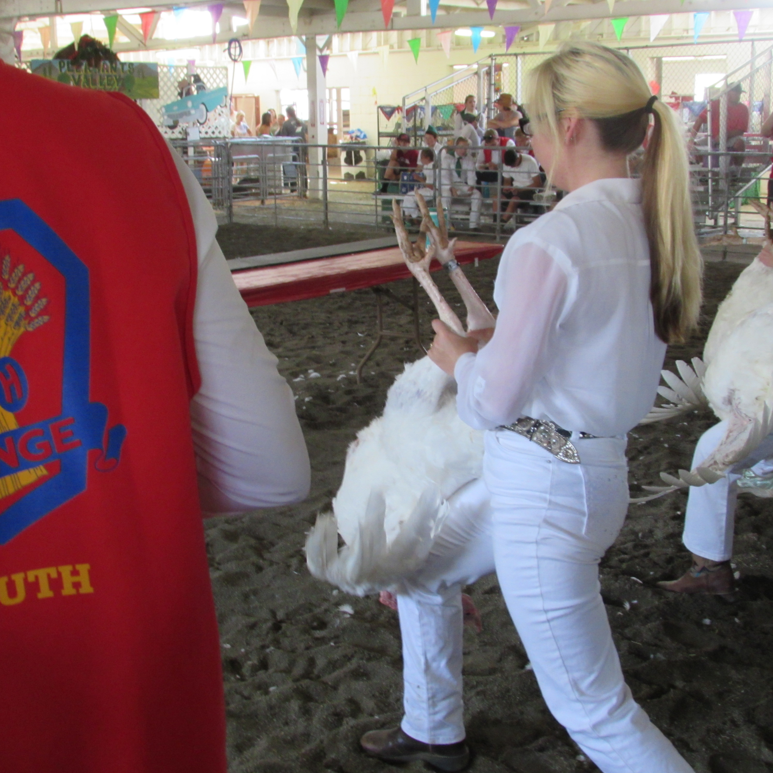 While impressive and family friendly, the Livestock Barn isn’t just a huge petting zoo. You may notice the youth standing on the sidelines of the barn, dressed in their 4-H “whites”, eager to share their vast knowledge about different animals. These 4-H-ers aren’t just random volunteers recruited by the fair. These kids literally spend hundreds of hours (not included hours of studying the breeds, species, anatomy, etc.) PLUS sweat, tears, and sometimes blood, raising the perfect animal to show, and hopefully auction for a fair price. Trust me – it is NOT easy to hold a turkey in this position for very long!