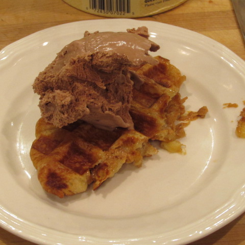 I think the title says it all, but I’m happy to belabor it by saying “ARE YOU KIDDING ME?!?” Seriously?!? A waffle, filled with everything delicious that I love, topped with my favorite ice cream? It’s not even my birthday! In any case, I hope you enjoy this super-fast, delicious, “I-just-had-to-have-hot-dessert-topped –with-ice cream” dessert “waffle”.