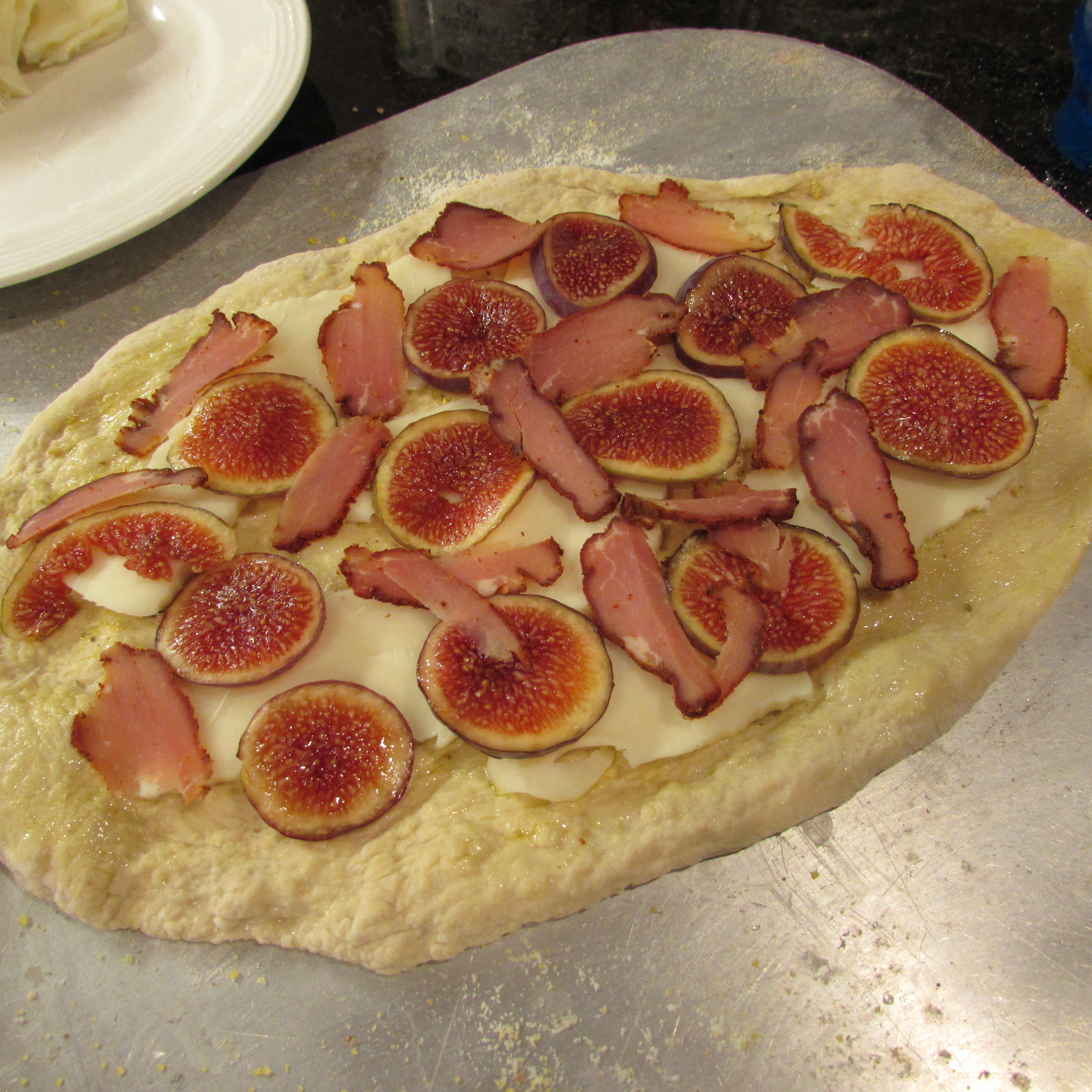 With a pizza peel, cast iron griddle, or other pan on the lowest rack in the oven, preheat oven to 450 degrees. Sprinkle pizza peel or other pan without a lip with a little corn meal. Roll/toss dough to desired size/thickness and place on pizza peel. Brush crust with olive oil, sprinkle with a little Johnny’s Garlic seasoning and top with cheese, figs and Tasso. Transfer pizza onto the hot pan in the oven and cook for around 8-12 minutes or until cheese is nice and bubbly on top.