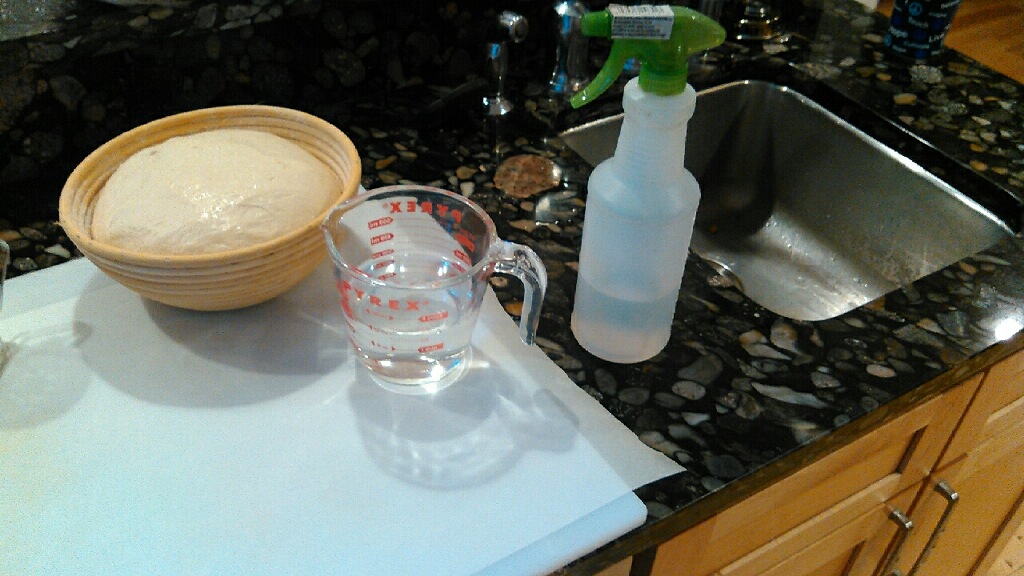 Place balls in to lightly floured batons or shape into baguettes. Place them in floured proofing baskets, mist the top with vegetable oil spray, cover with plastic wrap and let proof at room temperature for 3 to 4 hours until one and a half times their size.