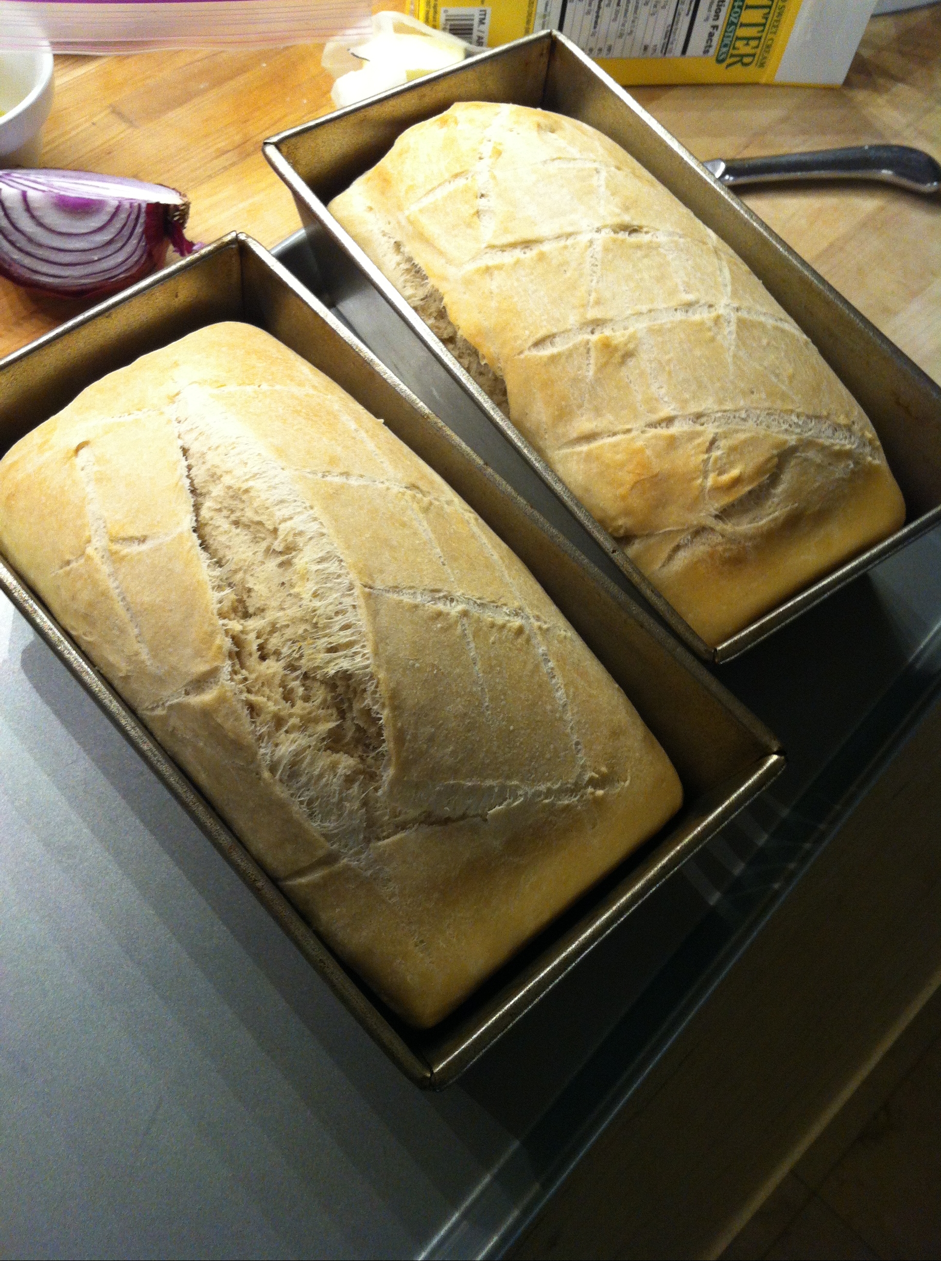 Remove loaves from oven and allow to rest on cooling rack for 1 hour before slicing.
