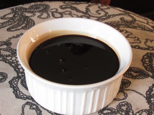 Remove from heat and allow to cool completely. Strain off aromatics and store balsamic glaze in an airtight container in the refrigerator. I’m using a jam jar for this purpose today.