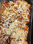 Place in a greased baking dish. Top with more sauce if desired (I like them saucy!), and some more cheese.