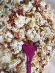 Add in rice a little bit at a time, then finish with cooked bacon.