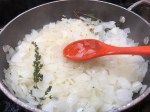 Add onions and thyme, sprinkle with salt and pepper, stir.