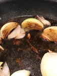 Heat a large skillet over medium high heat, drizzle with oil. Sear meat on each side. Remove the meat to an oven safe baking dish. Sear the onions in the same skillet.