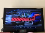 We dusted off the Playstation 2. Literally dusted it off – it was covered in sawdust, sitting on a shelf in the garage. I’ve been holding onto it forever because I love the game Burnout 2. I am terrible at video games and more so at driving video games, but the object of Burnout 2 is to crash the car! I’m exceptionally good at crashing video game cars. Mad skills, old school, with a corded controller.