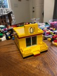 Construction of our LEGO city continues. I made what was supposed to be a schoolhouse, but I thought it looked like a saloon then added a second door. I was informed it looked like a Taco Bell school. It is now officially be known as “Taco Bell School”.