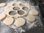 Sprinkle flour on a rolling surface. Roll out dough to desired thickness (usually about 3/4 inch, but you can go thinner).