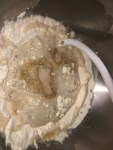 Mix 2 cups of flour and salt in mixer bowl. Add yeast mixture, and equip a dough hook. As the dough starts to come together, slowly add remaining ½ cup of flour. The dough is ready when it has pulled away from the bowl and is smooth. About 4 minutes.