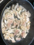 Salt and pepper chicken very well. Add a tablespoon of oil and add chicken to hot pan. Cook until no longer pink. Remove chicken to a bowl and set aside. Return pan to the stove.