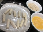 5. Place covered cheese sticks into the freezer for at least 30 minutes. Leave in freezer until your oil is ready for frying.